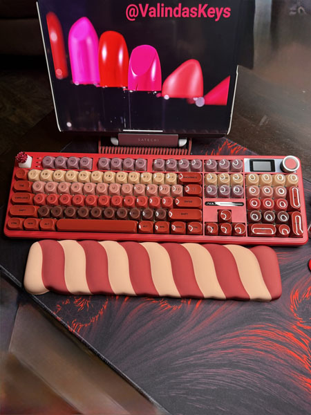 I absolutely love my new keyboard and mat! Everything came quickly and was packaged securely. Even had little ribbons and stickers which I thought was a nice touch! The keyboard is very high quality and was easy to install with the instructions provided. I also received a mat that was high quality and looks great. Definitely would recommend checking out Valindas keys!