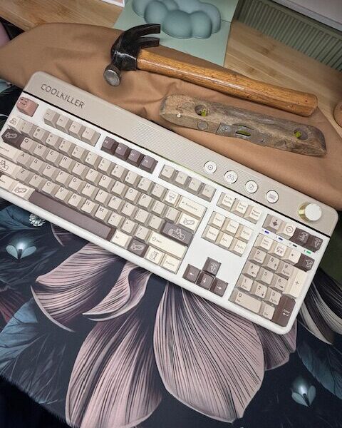 Custom Hand Built by ValindasKeys – new creamy Linear Switches (Silent available) Kiiboom(TM) 81% Light Mechanical Keyboard with added Green gradient artisan Keycaps/