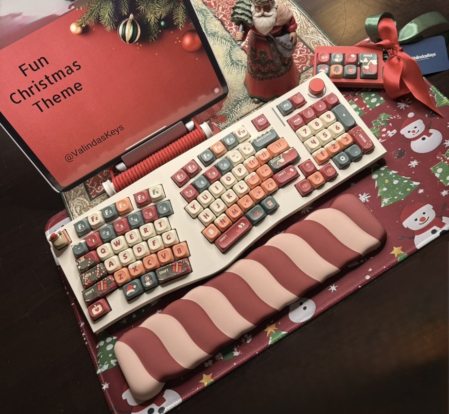 The Christmas Theme Keyboard Full Set is a complete setup with a Christmas-themed design. It includes all necessary components for a seasonal setup. Perfect for Christmas enthusiasts. πŸ‚Alice Christmas Theme Ergonomic Keyboard Full Set