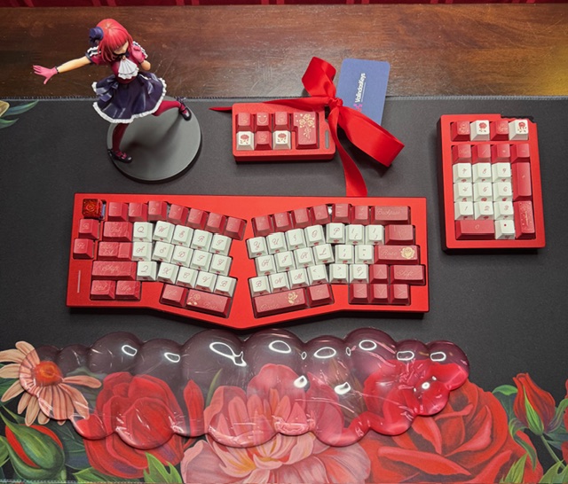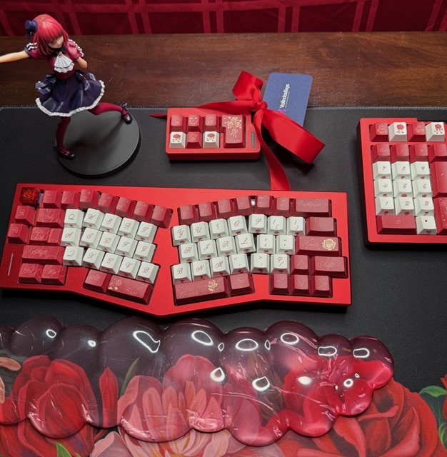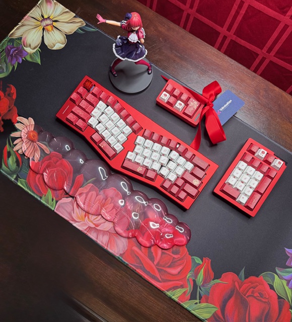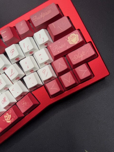 Alice Rose Theme Mechanical Keyboard Full Set: 67% Wireless Keyboard Alice Build, RGB Lights, Creamy Switches, Matching Desk Mat, Fidget, Rose Keycaps and Rose Wrist Rest Pad