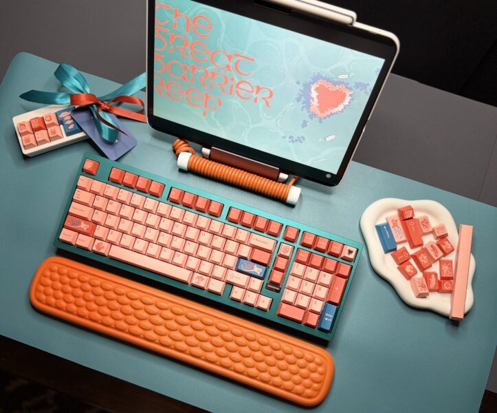 Barrier Reef Mechanical Keyboard Full Set: 100% Beautiful Teal Wireless Keyboard Aluminum, CapyBara(TM) Linear Switches Smooth, Artisan Barrier Reef Keycaps, Matching Theme Desk Mat, Fidget and Wrist Pad