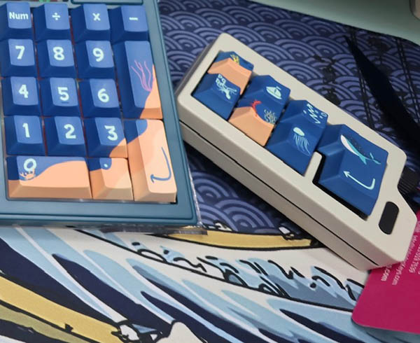 Beach Theme Blue Wireless Mechanical Keyboard Full Kit: Keyboard, Keycaps, Fidget and Deskmat