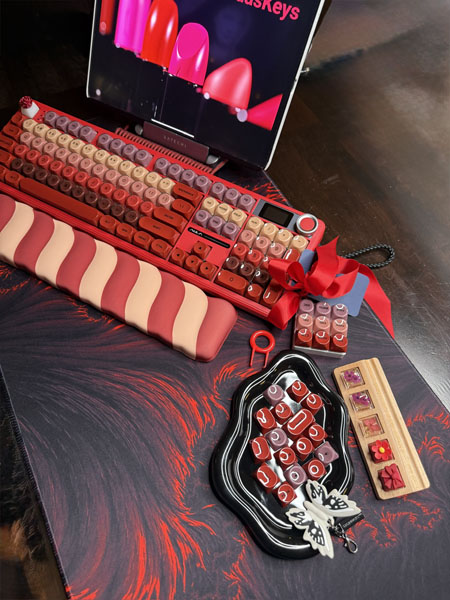 Berry Lipstick Full Keyboard Set: Keyboard, (AulaTM), Extra Keycaps, Fidget and Deskmat