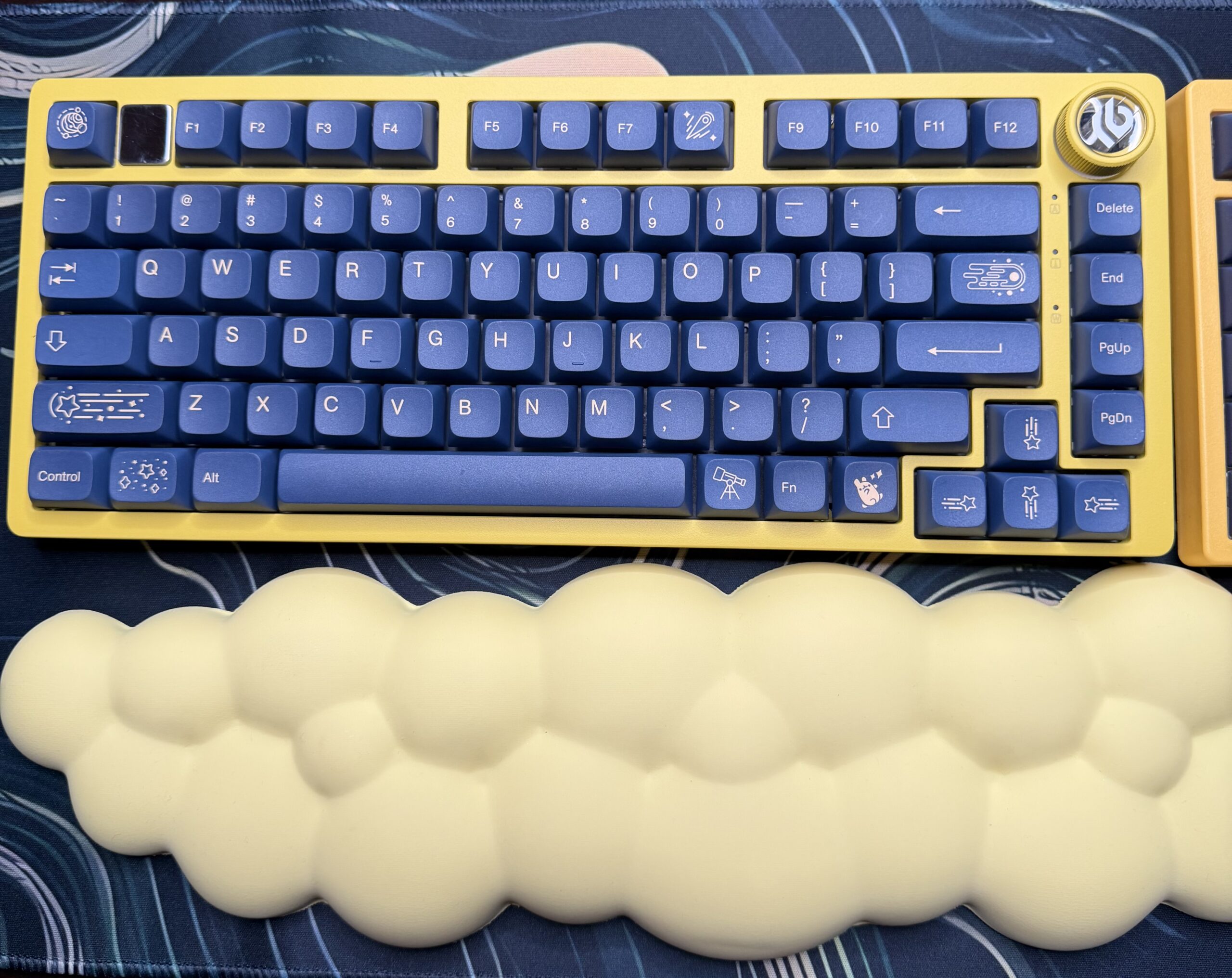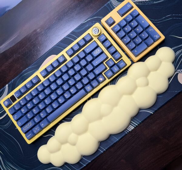Dark Blue and Bright Yellow Artisan Keycaps – Yellow\Dk Blue Mechanical Keyboard – Great for office and gaming with bright RGB backlights and with USB dongle and wireless connectivity. The yellow numpad is also trimode connectivity! Great Blue and yellow Desk Mat to match the lovely blue artisan keycaps.