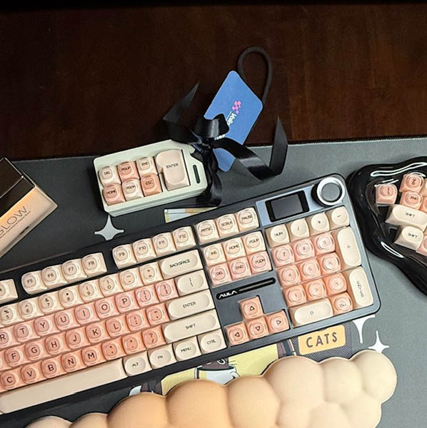 Beige Theme Wireless Mechanical Keyboard Full Kit: Keyboard, Keycaps, Fidget and Deskmat