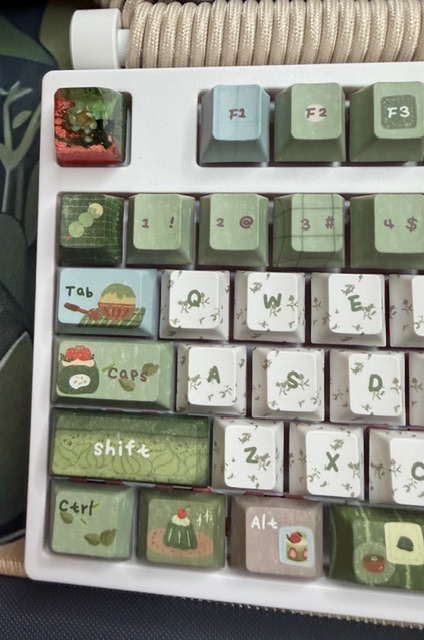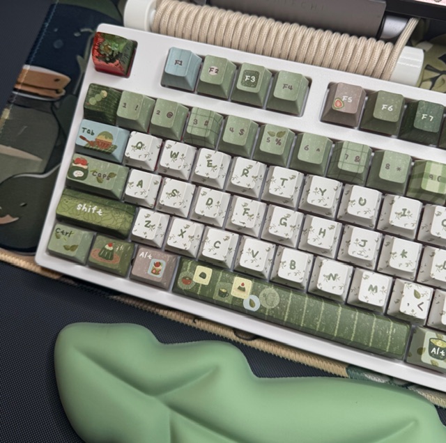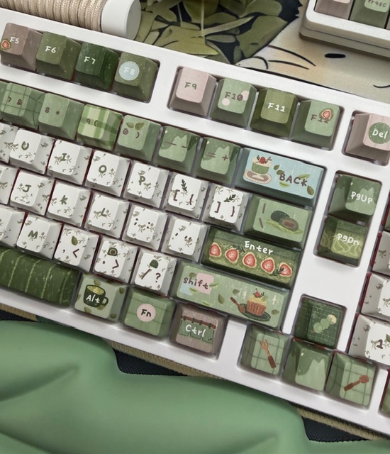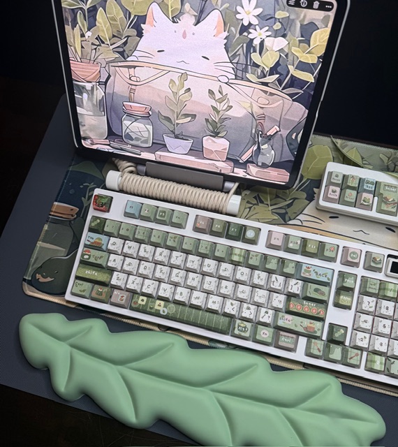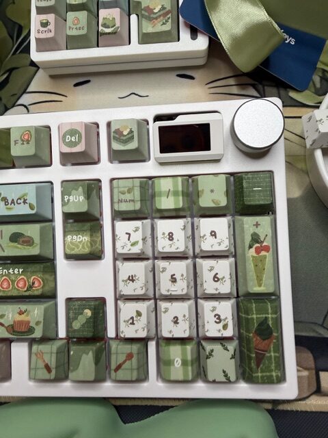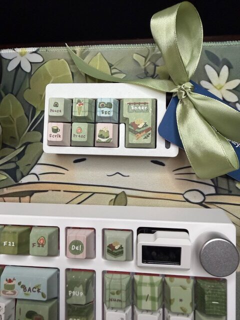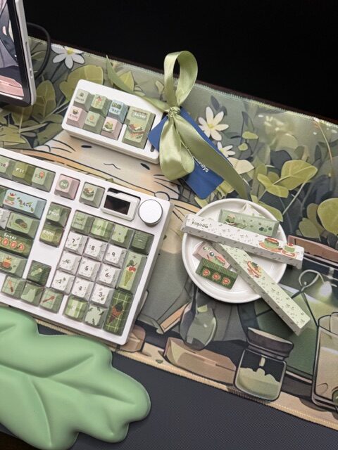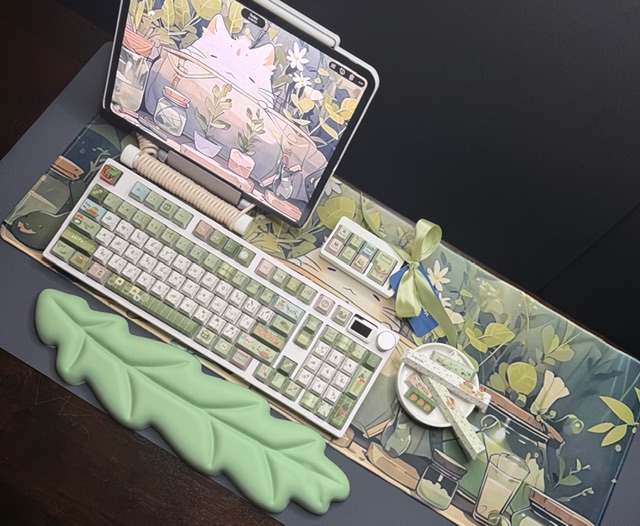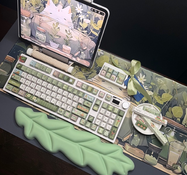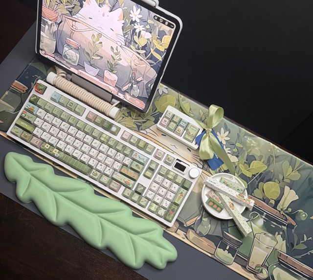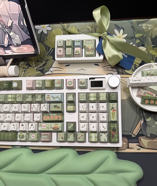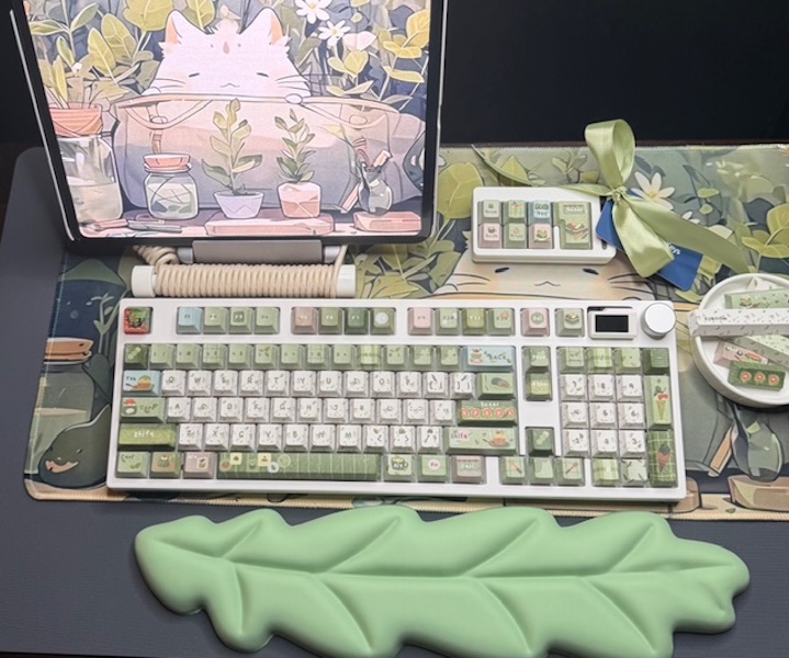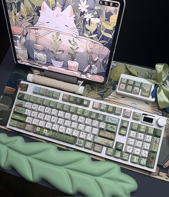 Green Sprouts Theme Mechanical Keyboard Full Set: 100% Quality NJ98 Keyboard with Numpad and TFT Screen, Artisan Keycaps, Desk Mat to Match Theme with Fidget and Wrist Pad