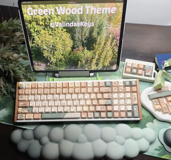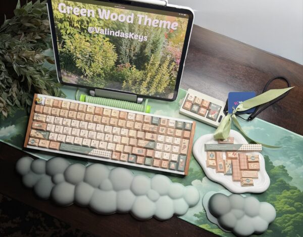 Green Wood Theme Wireless Mechanical Keyboard Full Kit: Keyboard, Keycaps, Fidget and Deskmat