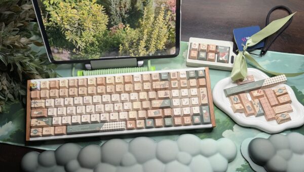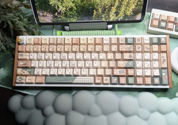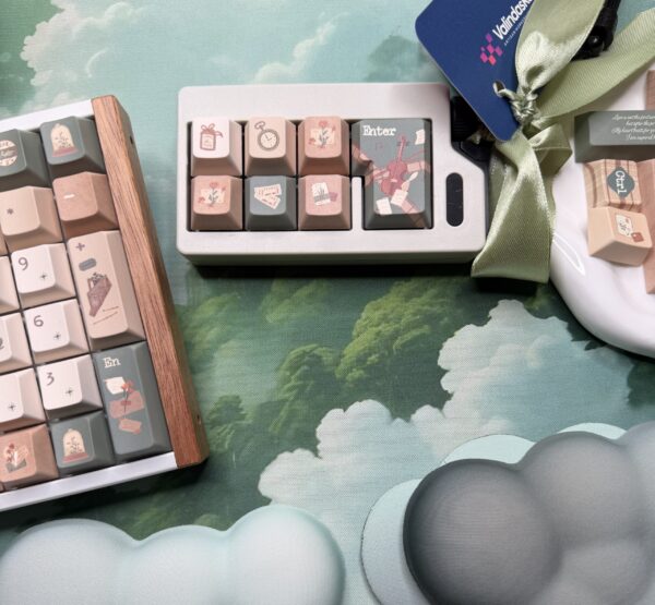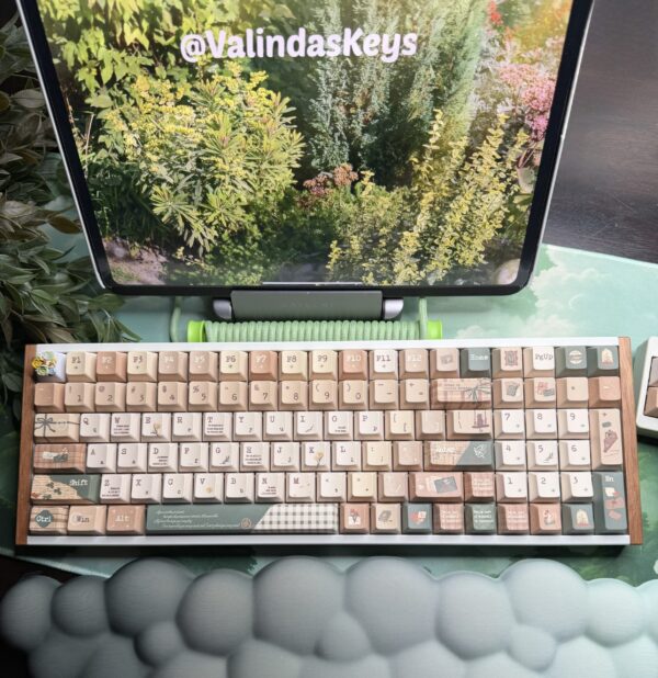 This set features a green-themed design, perfect for upgrading your desk. Very smooth magnetic switches, very quiet. Silent switches are available. 🍂