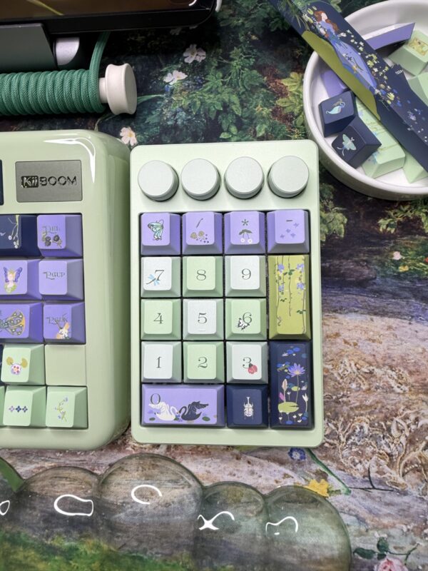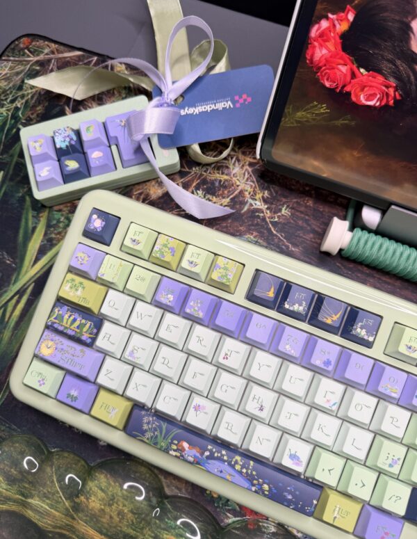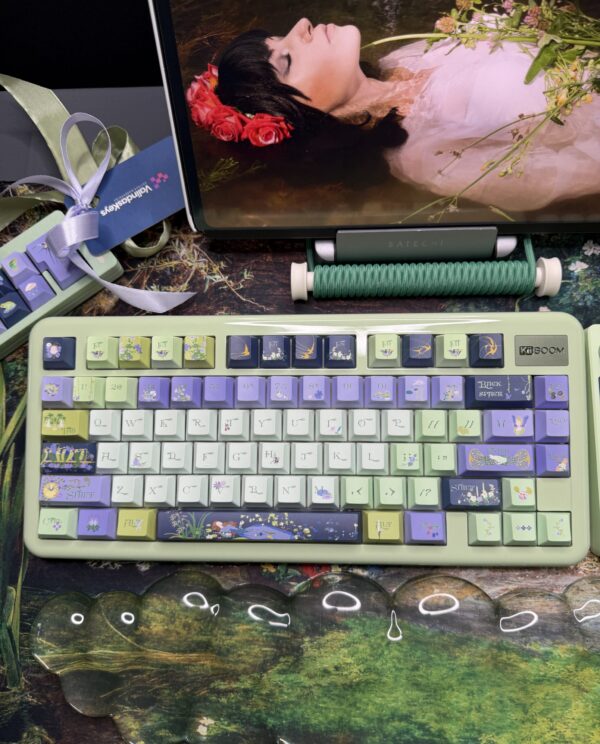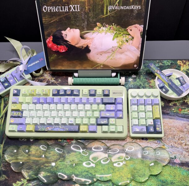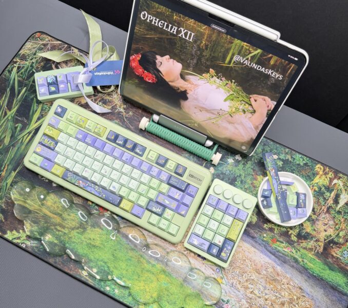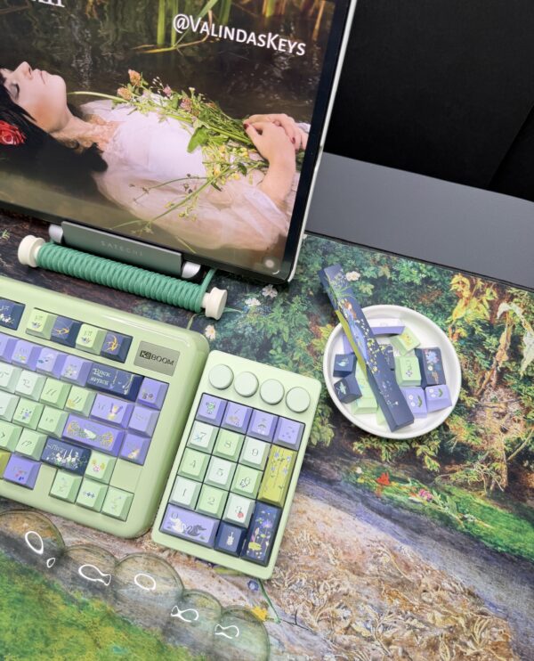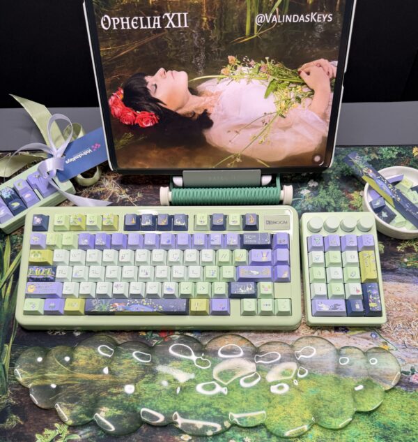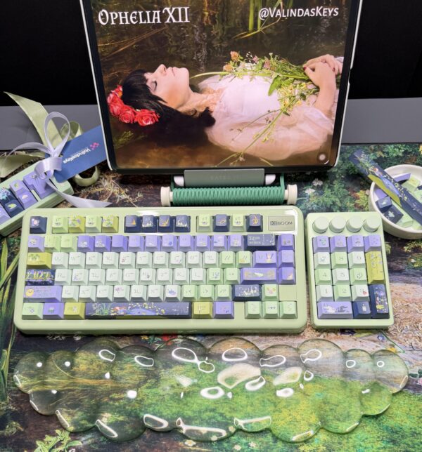 Ophelia XII Theme Mechanical Keyboard Full Set: 75% Wireless Keyboard, RGB Lights, Linear smooth switches, Matching 21 Key Lt. Green Mechanical Numpad, Matching Ophelia Theme Desk Mat, Fidget, and Green (Fluid Like) Tinted Wrist Rest Pad – Fantastic Set High Quality all items! Don’t Miss Out on this One!