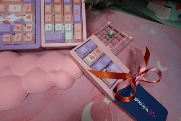 Peach Lavender Theme Wireless Mechanical Keyboard Full Kit: Keyboard, Keycaps, Fidget and Deskmat