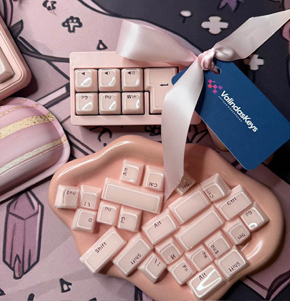 Pink Base with Screen Theme Wireless Mechanical Keyboard Full Kit: Keyboard, Keycaps, Fidget and Deskmat